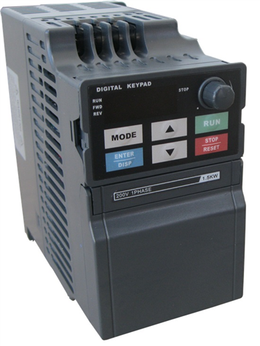 Six multi-function input terminals, realizing functions including fifteen section speed control, program running, four-section acceleration/ deceleration speed switch, UP/DOWN function and emergency stop and other functions